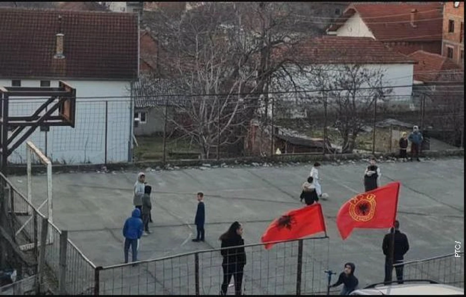 Zastave su potom okačili na ogradu sportskog igrališta, koje koriste deca iz preostalih srpskih porodica u Orahovcu, preneli su očevici RTS-u.