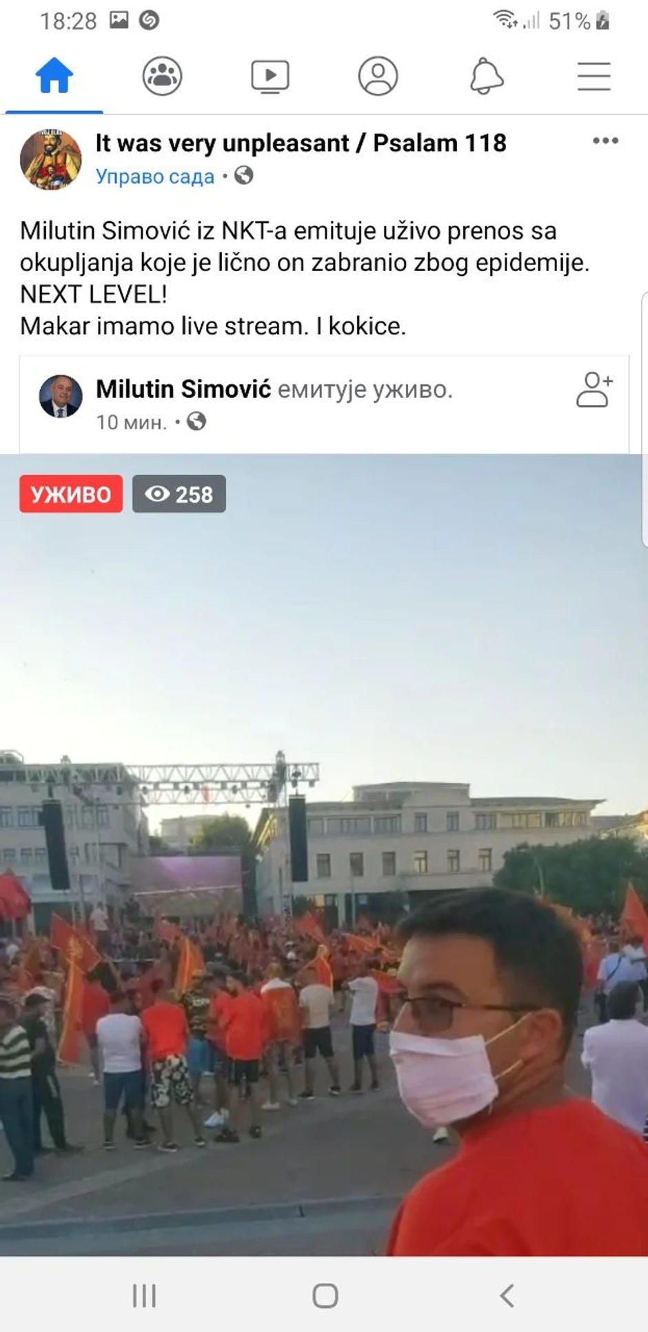 Iako je NKT zabranjivao okupljanja opozicije zbog epidemije, skup u Podgorici pojedini su prenosili uživo.