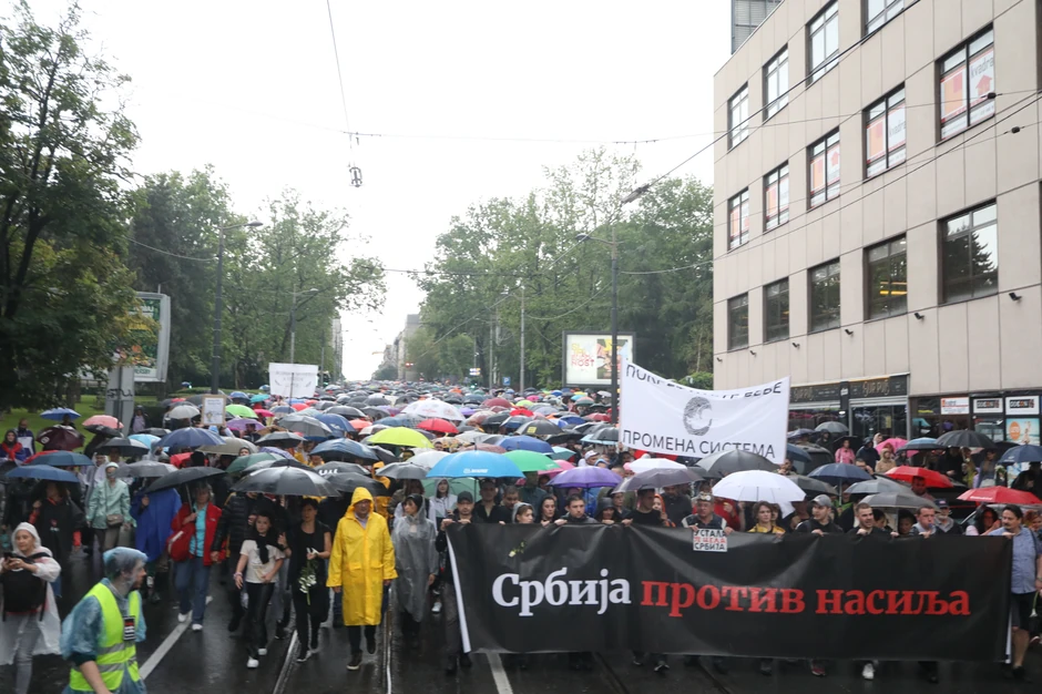 Oko 18.25 sati počela je protestna šetnja kroz Bulevar kralja Aleksandra ka Tašmajdanu i dalje ka krajnjem cilju, zgradi RTS u Takovskoj.