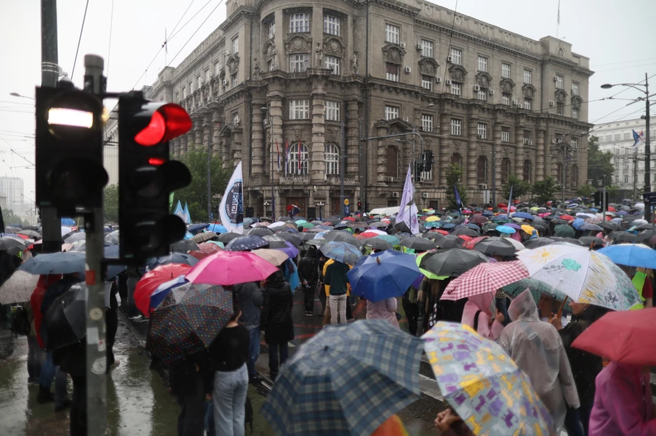 Protest "Odbranimo univerzitet" organizuje inicijativa Pobunjeni univerzitet. Planirani su nastupi hora, govori profesora, maturanata i glumaca. Saobraćaj je obustavljen na uglu Kneza Miloša i Nemanjine ispred zgrade Vlade.