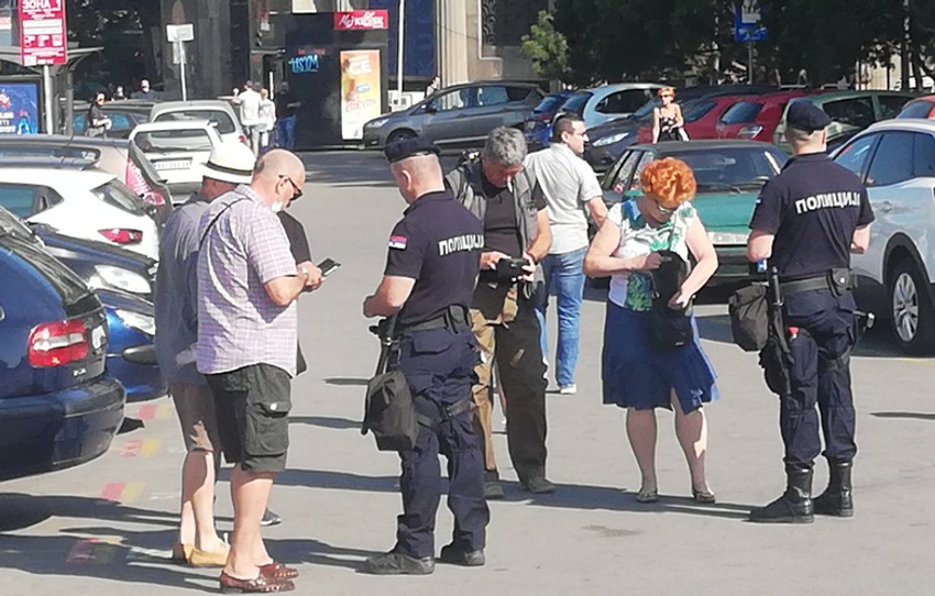 Deo Vlajkovićeve ulice, koja izlazi na Trg Nikole Pašića, zatvoren je za saobraćaj, a policija u Pionirskom parku, na Trgu Nikole Pašića, ali i okolnim saobraćajnicama, nasumično legitimiše prolaznike.