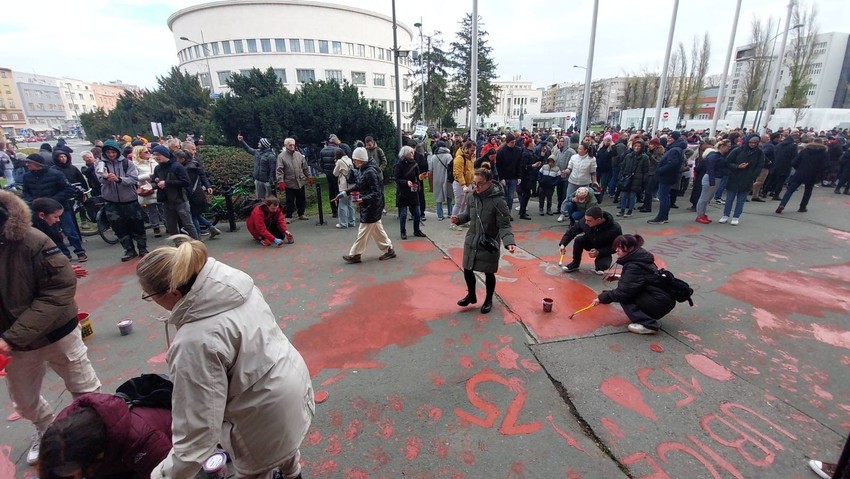 Današnja akcija simboličnog naziva "Crvena linija odgovornosti" slična je prošlonedeljnoj kada su aktivisti ofarbali u crveno Trg slobode u centru grada ispred Gradske kuće a sada ostavljaju gradskoj vlasti crvene poruke.