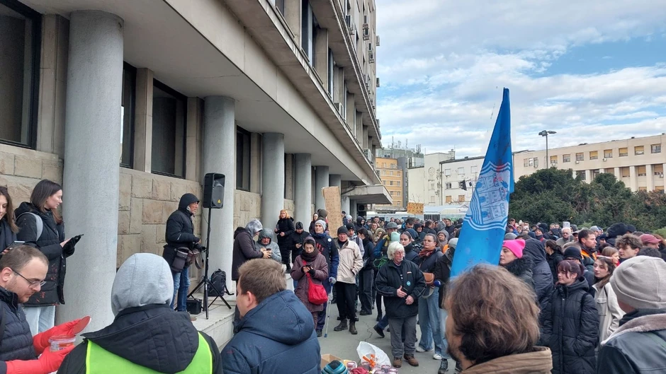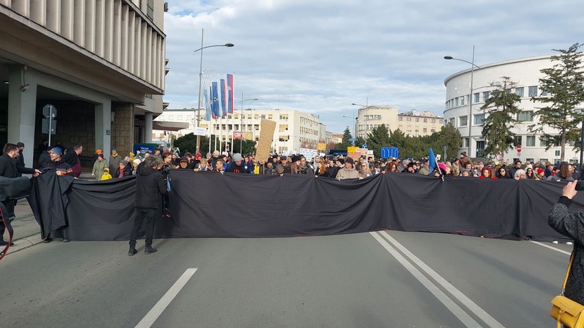 Nakon ostavljanja crvenih poruka gradskoj vlasti okupljeni su se uputili u kampus Novosadskog univerziteta kako bi podržali studente koji blokiraju fakultete.