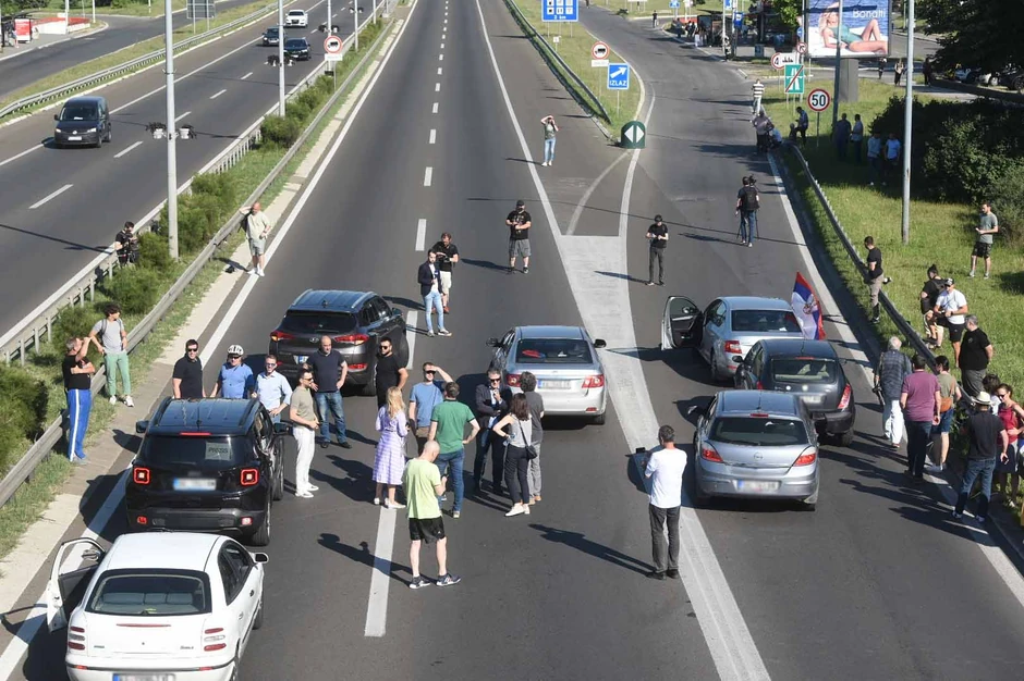 Na čelu obe kolone, i iz pravca aerodroma i iz pravca Bubanj Potoka, nalazilo se po dvadesetak automobila koji su vozili usporeno, raspoređeni u svim trakama autoputa tako da blokiraju kompletan saobraćaj iza njih.