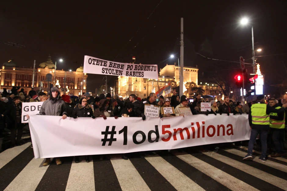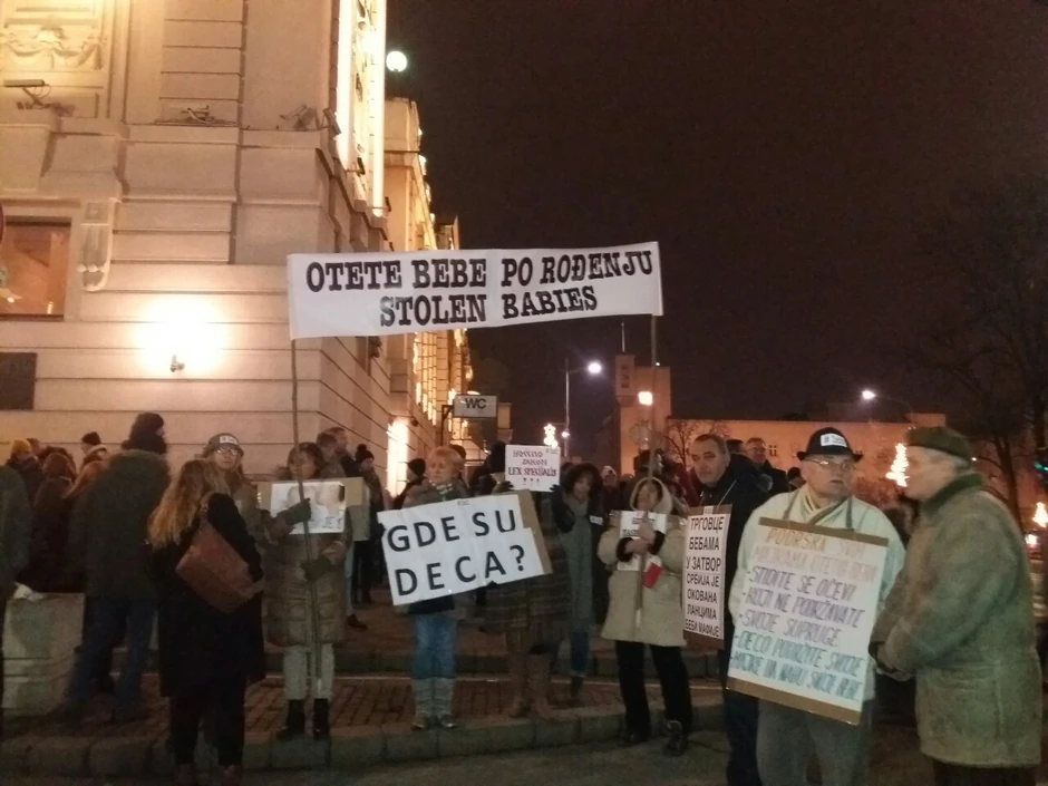 Na čelu kolone večeras su članovi udruženja roditelja veruju da su im bebe ukradene u porodilištima.