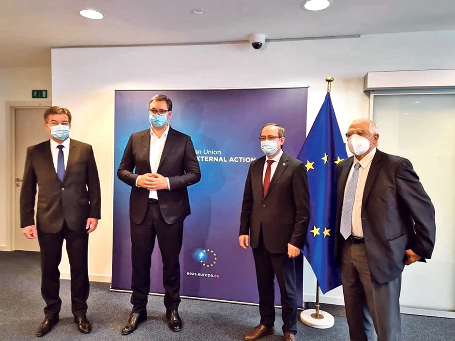 Domaćini susreta u sedištu EU bili su šef evropske diplomatije Đuzep Borelj i specijalni predstavnik EU za dijalog Miroslav Lajčak. Odigravao se u dve sesije, a razgovaralo se o tri osetljive teme - pitanja manjinskih zajednica, rešavanje finansijskih potraživanja i imovine. Borelj je uoči sastanka rekao da su teme bitne i da razgovori nisu uvek laki. Takvu ocenu dao je i Vučić, ali je posle susreta rekao da je ostvaren pomak.