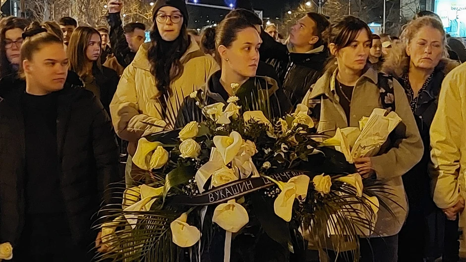 Oni stoje ćutke, pale sveće i ostavljaju cveće. Prisutnima se obratila profesorka Sanja Vuković, iz Ekonomske škole koju je pohađao preminuli Vukašin.