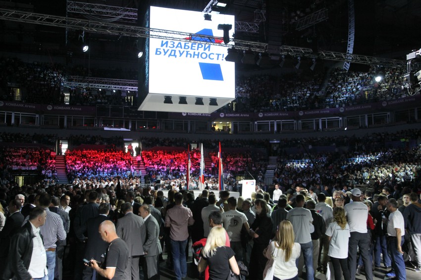 Završna izborna konvencija SNS-a počela je u Kombank Areni u Beogradu. U Arenu je stigao i lider SNS-a Aleksandar Vučić, kome su okupljeni skandirali više od deset minuta.
