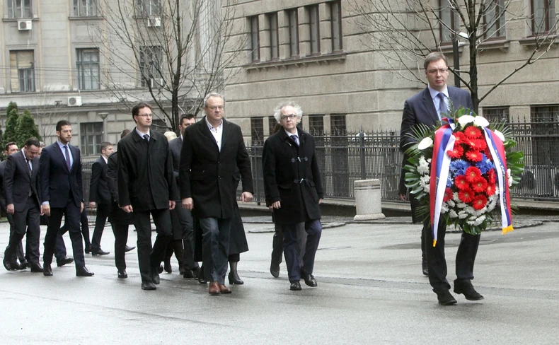 Članovi Vlade Srbije, na čelu s premijerom Aleksandrom Vučićem, položili su jutros vence na spomen-ploču u sedištu vlade na mestu gde je na današnji dan pre 13 godina ubijen tadašnji premijer Zoran Đinđić. U Aleji velikana na Novom groblju u Beogradu porodica, prijatelji, stranačke kolege i građani od jutros povodom 13 godina od ubistva premijera Srbije Zorana Đinđića odaju poštu, polaganjem venaca i paljenjem sveća na njegovom grobu.