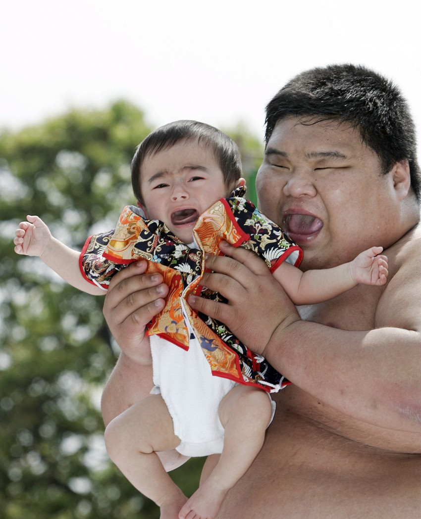 Nagi debeli snažni muškarci sa pojasom oko struka i komadom tkanine preko genitalija mogu prilično zastrašujuće izgledati mnogima od nas. Onda možete zamisliti kako tek bebe reaguju kad ih u ruke uzmu ovi džinovi. Na japanskom festivalu Konaki Sumo, sumo rvači drže bebe okrenute jedna drugoj. Pobednik je ona beba koja prva počne da plače. Ova ceremonija korene nalazi u japanskoj poslovici „bebe koje plaču brzo rastu“. Krici, suze i jecaji ovom prilikom predstavljaju blagoslov za dobro zdravlje.