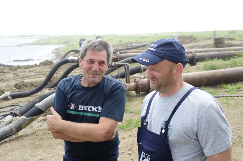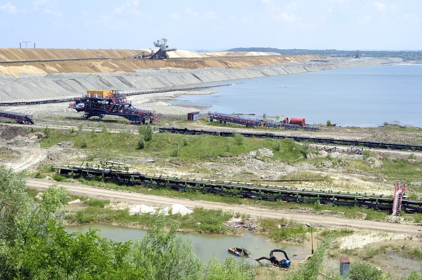 Skeleti dva ogromna bagera vire iz vode kao detalj neke bizarne umetničke instalacije, još pet, zajedno sa drugim mašinama i postrojenjima, prekrivaju voda i mulj.