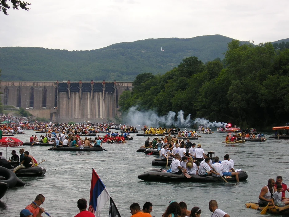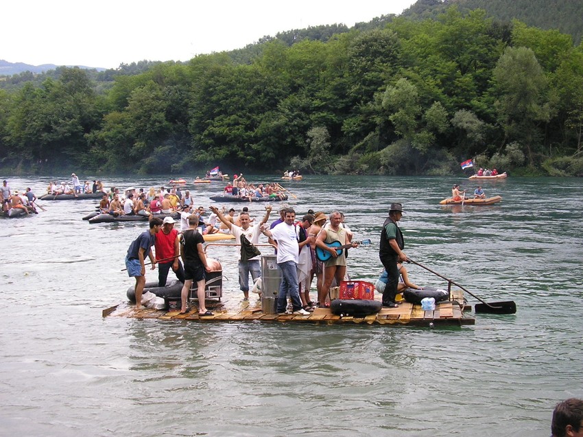 Splav sa lampekom je samo jedno od oko 1.200 raznih plovila kojima se juče plahovitom Drinom spuštalo oko 15.000 ljudi. A među tim plovilima - plutajući šank, muzički splav, nekoliko trubačkih orkestara, a našli su se i autentični drinski splavovi, plovila od plastičnih flaša, automobilskih guma i koječega još. Na većini, bar tamo može - obavezan roštilji i pozamašne zalihe piva.