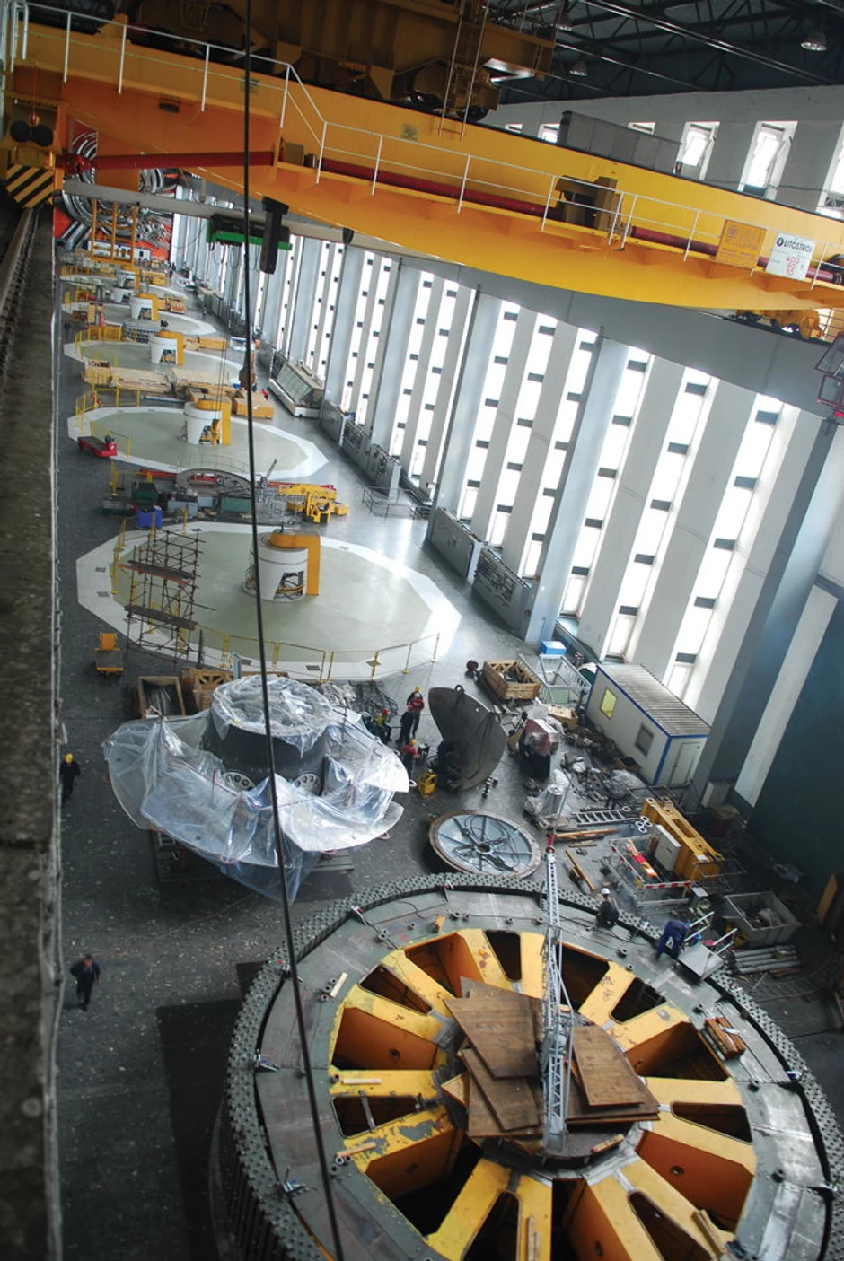 Deo agregata koji Dunav okreće brzinom od 71 obrtaj u minuti težak je oko 1.300 tona, a kako objašnjavaju inženjeri, to je samo početak čitavog procesa, jer je mehaničku energiju, prevedenu turbinama iz Dunava, potrebno pretvoriti u električnu. To se radi zahvaljujući impozantnim rotorima i statorima. Turbina se nastavlja na rotor čija težina iznosi 630 tona. Takav rotor, zahvaljujući snazi vode, vrti se u 330 tona teškom statoru.