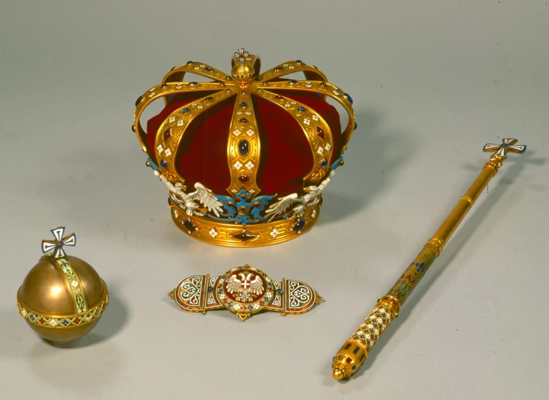 Protokol ceremonije preuzet je od Rusa, ali je trebalo napraviti krunu i ostalo što uz nju ide: skiptar, “državni šar”, ukrašenu kuglu koja simbolizuje planetu, i plašt sa posebno ukrašenom kopčom.