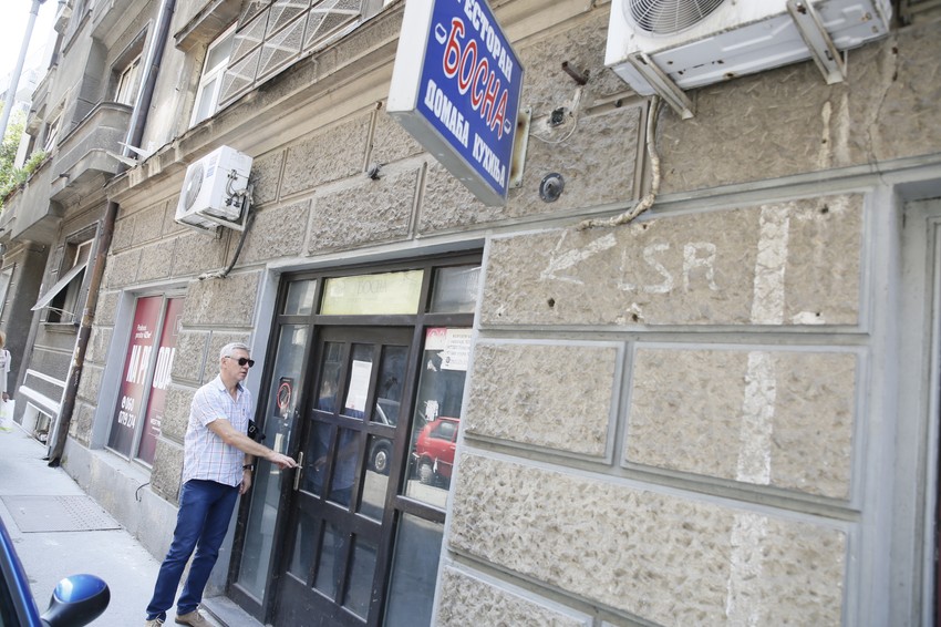 Da vidimo je li „Bosna“ gde je nekad bila? Jeste tih pet slova iznad, ko zna od kada, zamandaljenih vrata i bezličnim obaveštenjem o stečaju ugostiteljskog preduzeća u okviru kog je poslovala. To bi bilo to za mesto u Majke Jevrosime gde su zajednički znali da sednu, najčešće strogo kafanski podeljeni, novinari iz „Borbine“ i „Politikine“ kuće i obližnjeg Radio Beograda.