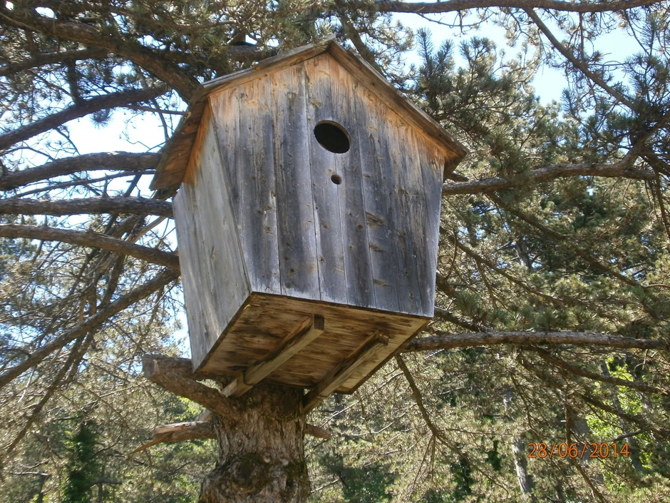 Ono što je nam je privuklo pažnju na Cetinju je kućica na drvetu. To nije kućica za ptice, već velika, specijalna za sokolove.