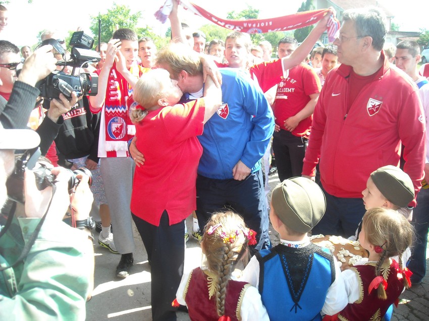 Meštani Ježevice, ali i brojni namernici iz čitavog čačanskog kraja tiskali su se juče na Grujanskim livadama ne bi videli i pozdravili svog rođaka, prijatelja, fudbalskog idola. Kada je Robert Prosinečki izašao iz automobila, Ježevicom se razlegli euforični uzvici. Zasvirali su trubači, a rođaci i prijatelji iz detinjstva nisu mogli da iščekaju da ga zagrle. Trener Crvene zvezde bio je na ivici suza.