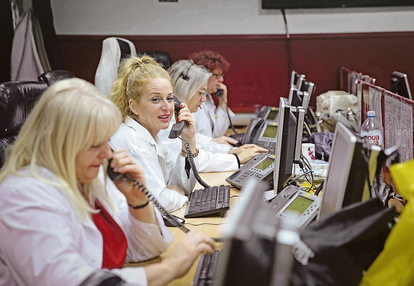 I dok sanitet juri ulicama prestonice, u Zavodu za hitnu medicinsku pomoć tim dispečera preko monitora prati kretanje svih vozila Hitne pomoći, koja imaju urađen GPRS sistem za praćenje. Nakon što dobiju poziv od povređene osobe, preusmeravaju ga ekipi koja je u tom momentu najbliža zadatoj adresi.