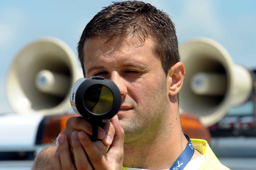 Oštrom cikcak vožnjom, za samo par minuta, krivudajući od ivice do ivice 45 metara široke piste projurio je od jednog do drugog kraja tri i po kilometra dugačke staze, puštajući povremeno preko megafona montiranih na krov vozila različite zvukove, kako bi rasterao vrane i galebove koji bi se našli u zoni iz koje avioni poleću i u koju sleću.