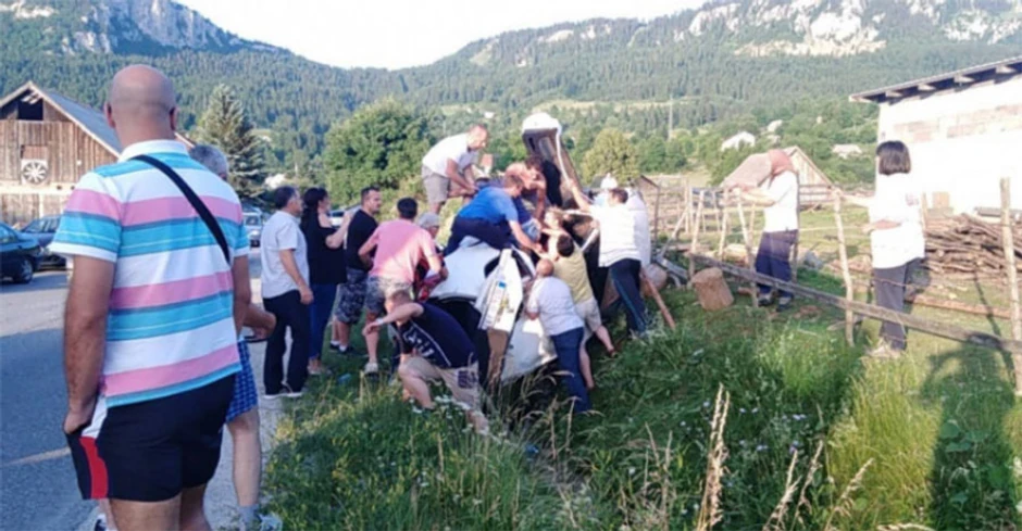 Meštanima Mokrog i ljudima iz vozila nisu trebali ni policija ni vatrogasci, rukama su odvaljivali lim kako bi izvukli mladi par.