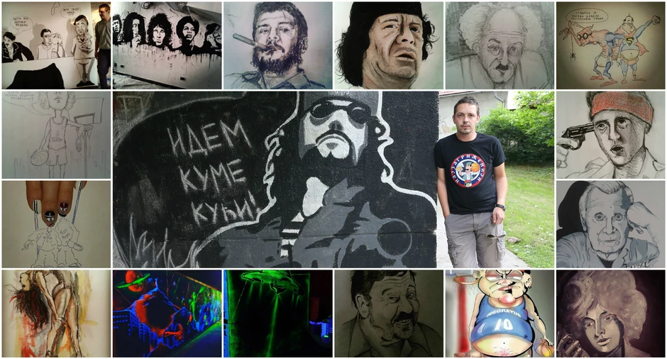 - Radio sam mnoge grafite, a jedan od njih je na dečjoj sceni Gradskog pozorišta Jazavac i na taj sam posebno ponosan. Nacrtao sam četiri velikana - Petra Kralja, Ružicu Sokić, Nebojšu Zubovića i Batu Stojkovića – kaže Boris.
