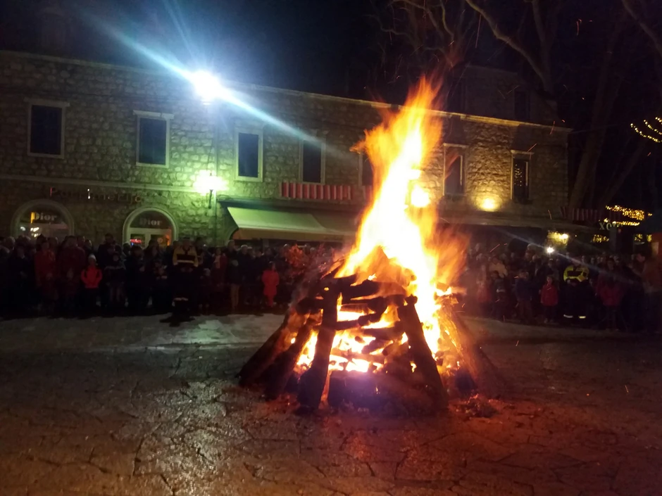Nakon nalaganja badnjaka na vatru priređen je vatromet i služeno kuvano vino.