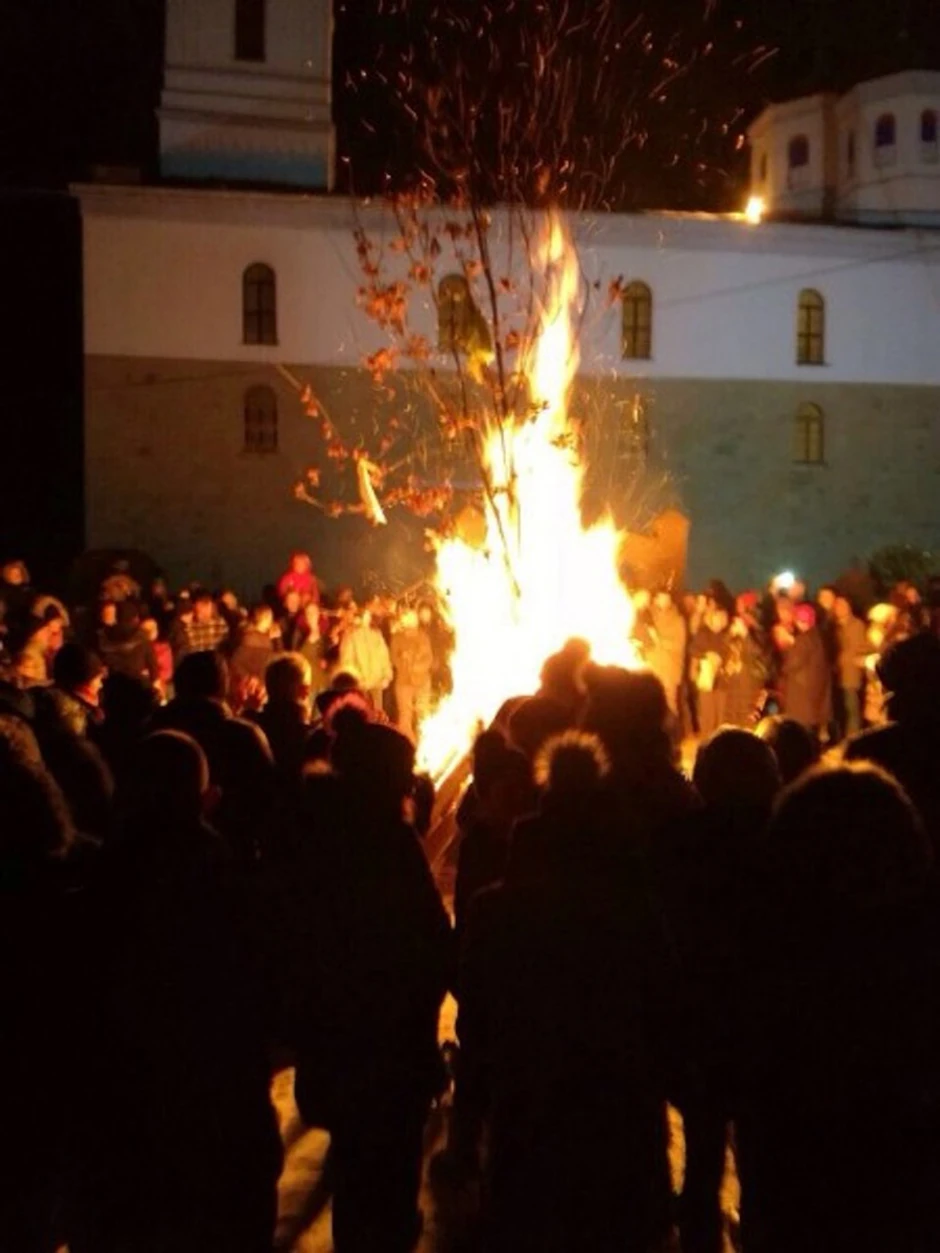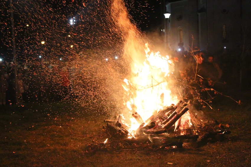 Ispred crkve Presvete Bogorodice u Gradiški večeras su nakon liturgije i pijukanja za najmlađe naloženi badnjaci.