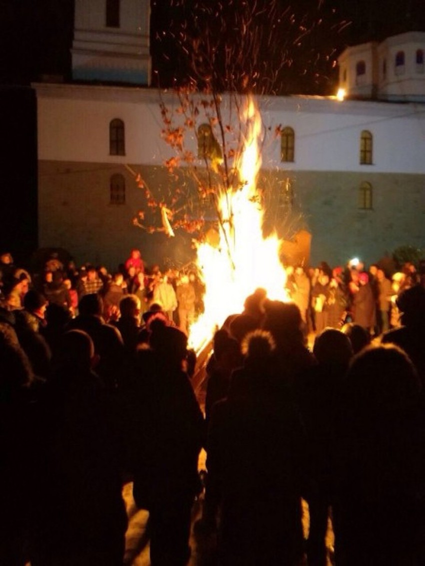 U porti crkve Rođenja Presvete Bogorodice u Doboju večeras je osveštan i naložen badnjak, u prisustvu brojnih vernika.