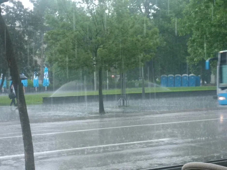 Prskalice za zalevanje trave u samom centru Banjaluke, danas su radile i po najvećem pljusku, iako su padavine najavljene tokom čitave sedmice.