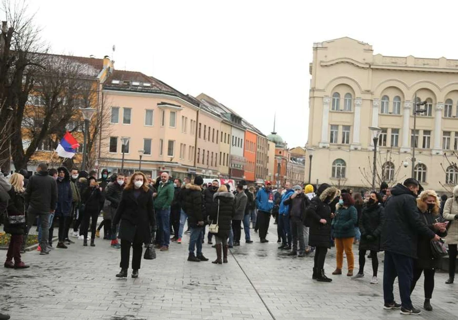 Stigli su i pripadnici žandarmerije koji su napravili kordon prema Palati. Okupljeni skandiraju “lopovi”, “hajde silo”, “hoćete krenuti na gladan narod”. Na platou su i frizeri koji su došli da podrže ugostitelje, koji su takođe nezadovoljni zatvaranjem.