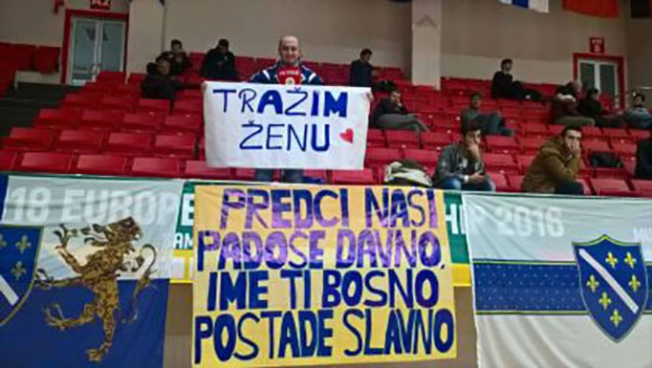 Naime, u jednom trenutku utakmice on je držao transparent na kojem je pisalo: "Tražim ženu".