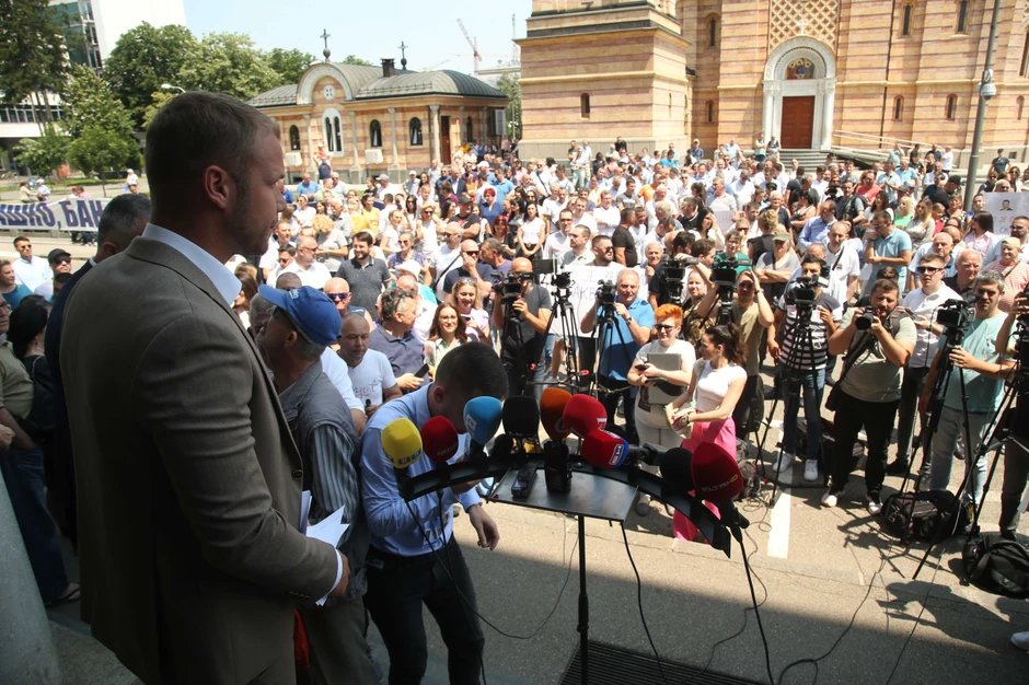 Okupljeni Banjalučani izviždali su danas predsednika i potpredsednika Skupštine grada Ljubu Ninkovića i Sašu Čudića.