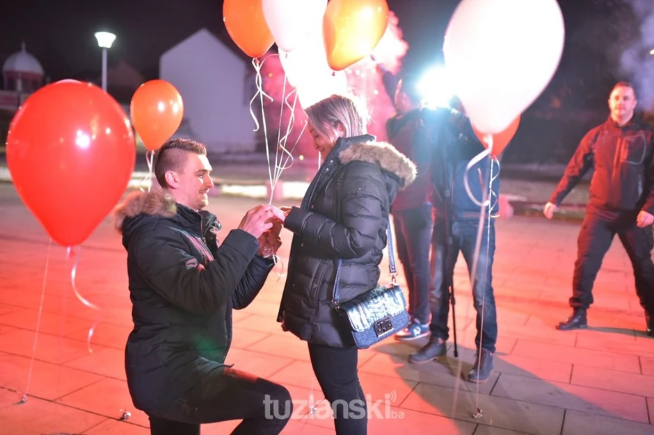Tuzlak Armin Aličić odlučio je da šestogodišnju vezu sa svojom devojkom Amrom Veličić kruniše na nesvakidašnji način uz čarobnu veridbu u centru Tuzle, piše Tuzlanski.ba.