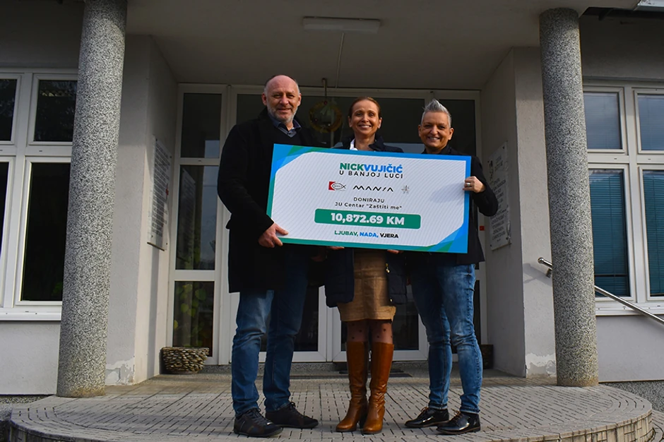 Kompletna sredstva prikupljena od prodaje ulaznica za nastup Nika Vujičića u Banjaluci donirali su predstavnici EKC IHTUS, Ljiljana Baniček i Siniša Stojković, jednog od organizatora događaja.