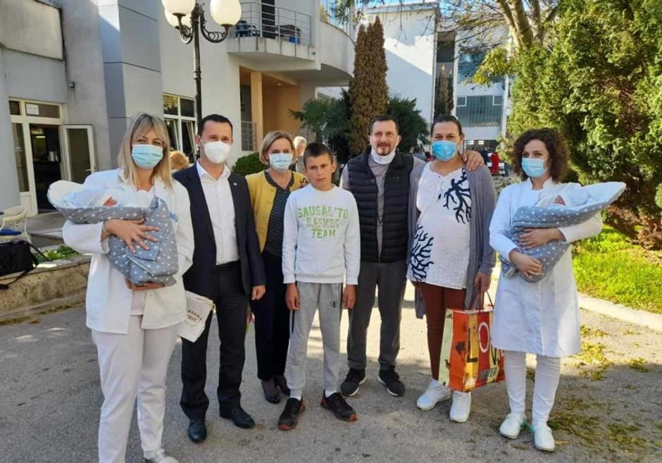 Majku Ilijanu i njene devojčice Valentinu i Viktoriju danas je na izlasku iz Trebinjskog porodilišta dočekao i gradonačelnik Trebinja Mirko Ćurić, koji je bebe darovao zlatnikom, a srećnoj majci obećao posao u gradskoj upravi, piše Srpskainfo.