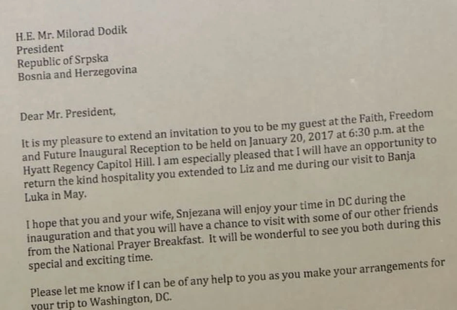 Pokazivanjem pozivnice na inauguraciju američkog predsednika, Donalda Trampa, predsednik Republike Srpske, Milorad Dodik, začepio je usta zlonamernicima.