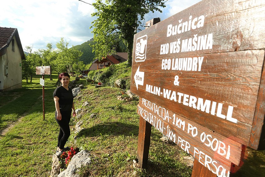 – Ova veš mašina, naravno, nema programator, a snaga i protok vode u bubnju skovanom od drveta reguliše se železnom kukom – objašnjava Marija Reljić, domaćica u kući za odmor “Dušan”, inače zaposlena u Nacionalnom parku “Una” u Martin Brodu, kao recepcionerka i turistički vodič.