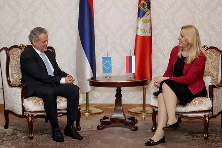 Predsednica Republike Srpske Željka Cvijanović razgovarala je danas sa šefom Delegacije Evropske Unije u BiH i specijalnim predstavnikom EU u BiH Johanom Satlerom.