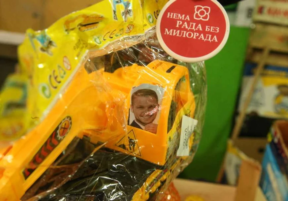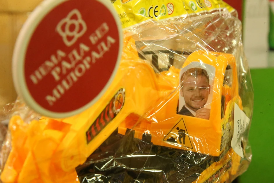 I nema sumnje da će na ovaj način privući mušterije, ako ništa, bar da se raspitaju za cenu. A ona nije mala. Plastični bager sa gradonačelnikovom slikom košta 20 evra (40 maraka)!