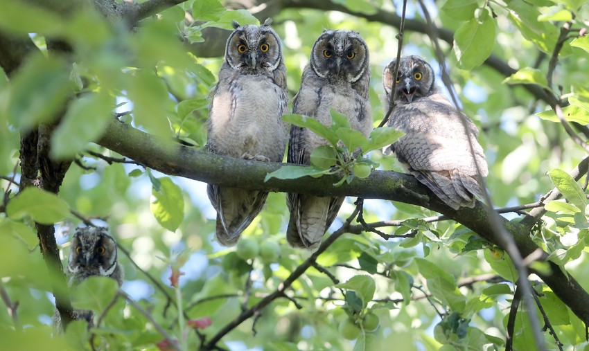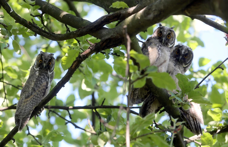 Porodica sova pronašla je utočište u krošnji drveta u banjalučkom naselju Lazarevo. Njihovu dremku jutros je, na par trenutaka, prekinuo fotoreporter „EuroBlica“, koji je primetio kako kunjaju na granama.