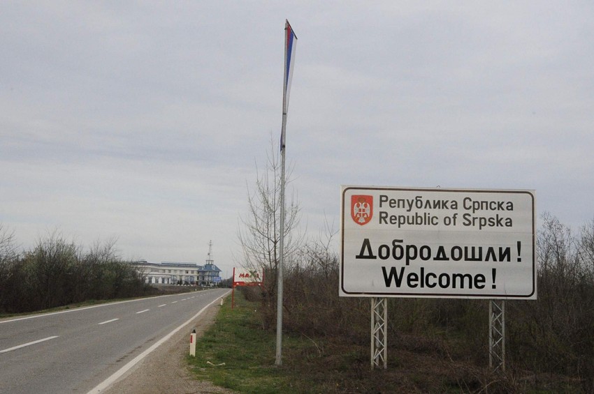 S druge strane Pavlovića puta je tabla s natpisom "Dobro došli u Republiku Srpsku". S te strane viori se zastava RS. Nema zastave BiH i natpisa da je reč o državi BiH.