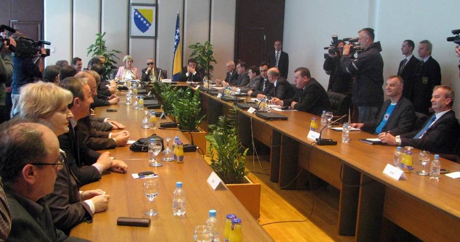 SARAJEVO - Lideri parlamentarnih stranaka na nivou BiH ni juče nisu postigli dogovor o formiranju vlasti na državnom nivou, a nakon neuspešnog dvočasovnog sastanka održan je i kraći međusobni sastanak Milorada Dodika, Mladena Bosića, Zlatka Lagumdžije i Sulejmana Tihića, koji takođe nije rezultirao konkretnim dogovorom.