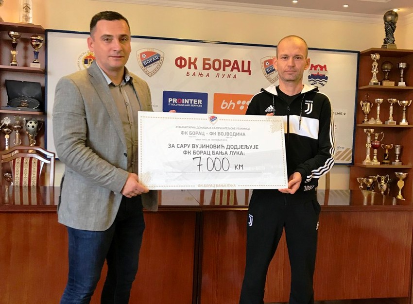 Iz Fudbalskog kluba Borac saopšteno je da je u humanitarnoj akciji za mladu Banjalučanku Saru Vujinović prikupljeno oko 3,5 hiljade evra (7.000 konvertibilnih maraka).