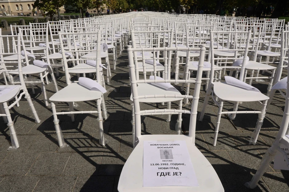 Ovi podaci stoje na belim stolicama u srcu Banjaluke. Simbol onih kojih danas nema među nama, piše Srpskainfo.