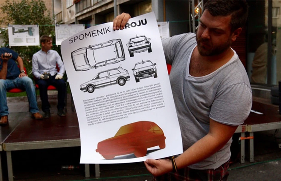 Magistar kiparstva BiH, Daniel Premec predstavio je sinoć, u okviru Festivala ulične umetnosti u Sarajevu idejno rešenje spomenika posvećenom putničkom automobilu „golf 2”.