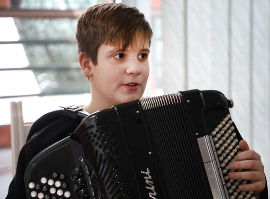 – Volim harmoniku i volim da sviram. Nije mi teško da vežbam, uživam u tome – kaže Šale Šampion.