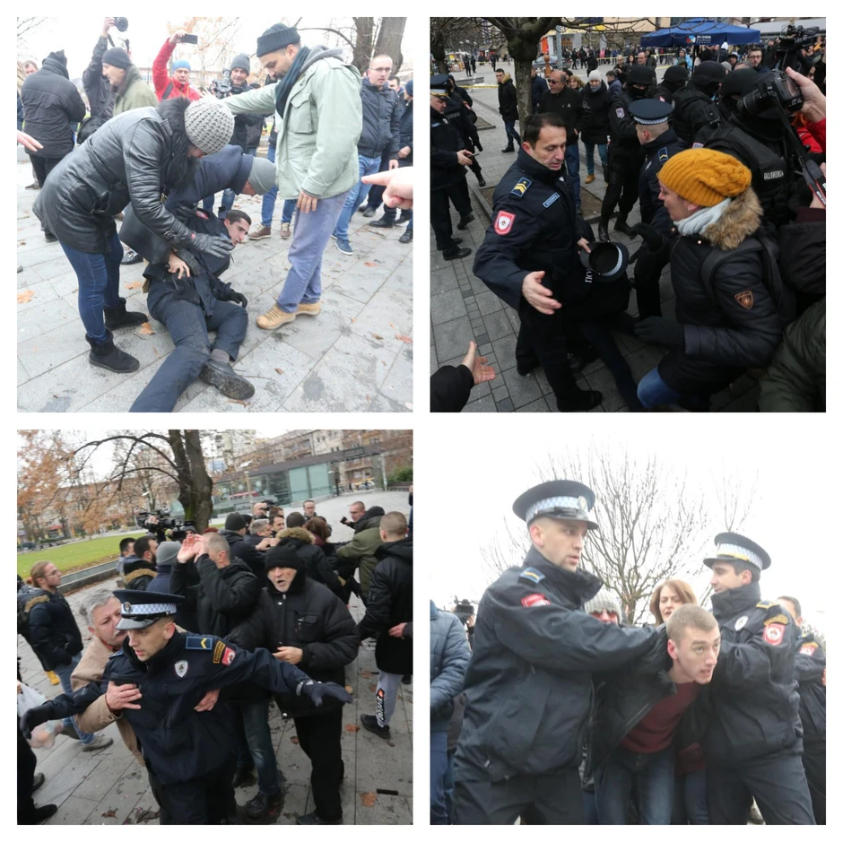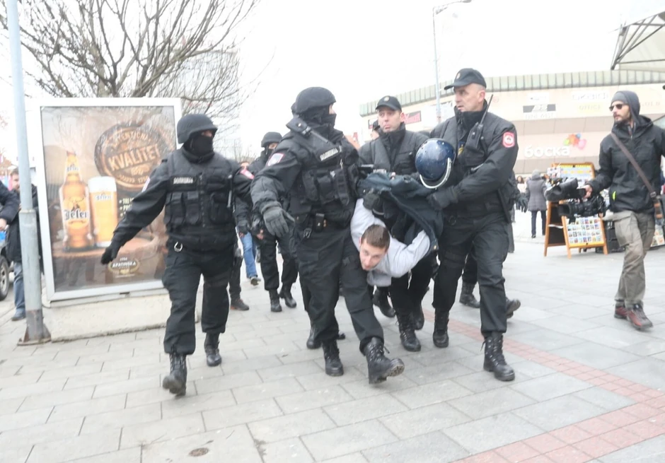 Iz policije je rečeno da je zbog počinjenih prekršaja iz Zakona o javnom redu i miru i Zakona o javnom okupljanju te dokumentovanja krivičnog dela određene osobe su dovedena u službene prostorije.