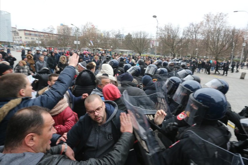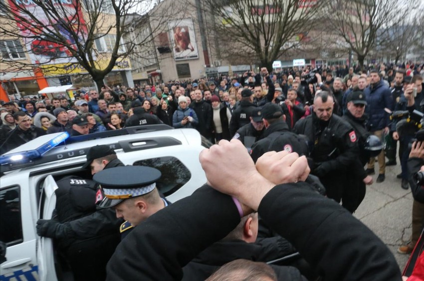 Jedan građanin je uleteo među policiju kako bi uzeo drvenu šaku, ali su ga oni uspeli savladati.