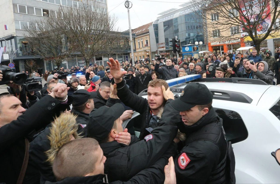 Iako su građani pokušali da spreče hapšenje, a Draško je pružao otpor, umešala se Jedinica za podršku MUP-a RS i odvela Stanivukovića i Borenovića.