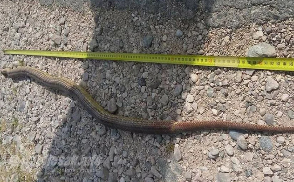Prema fotografijama koje je objavio bljesak.info, smatraju da se radi o zmiji kravosas. Kravosas ili elaphe quatuorlineata je neotrovna, najduža evropska zmija.